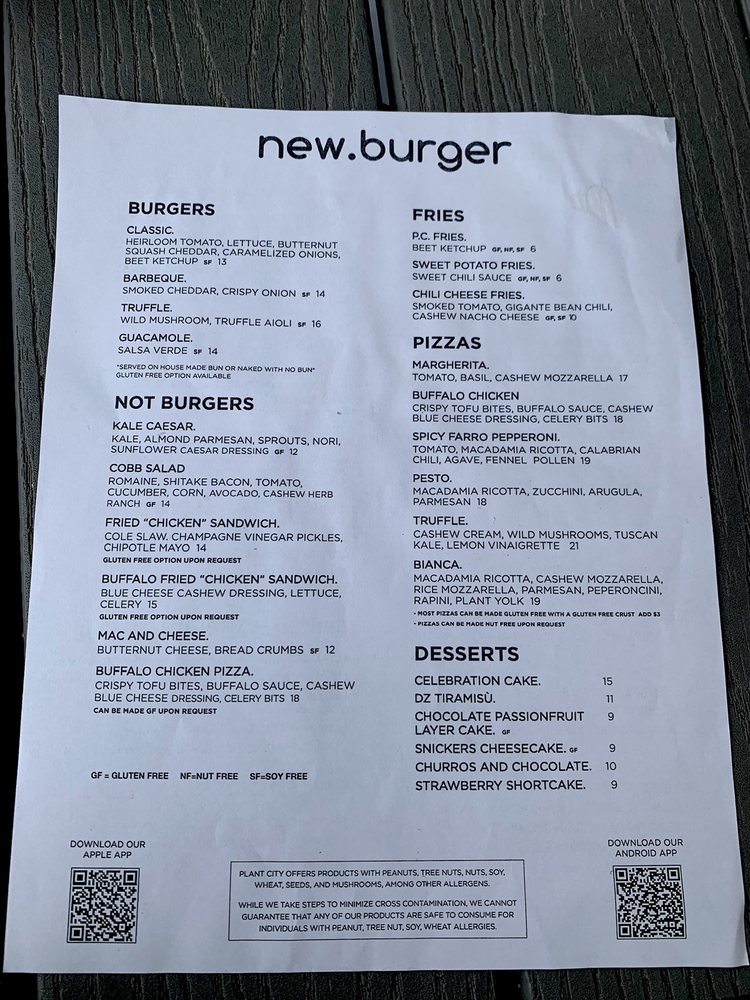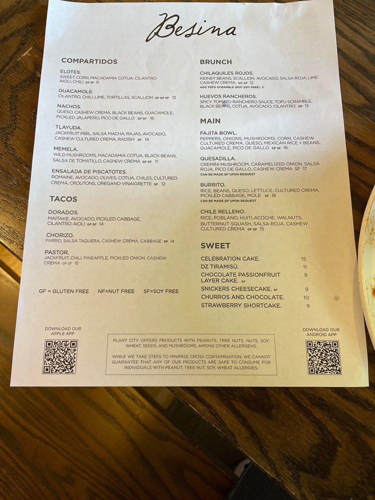 Plant City Menu